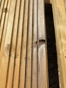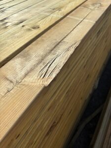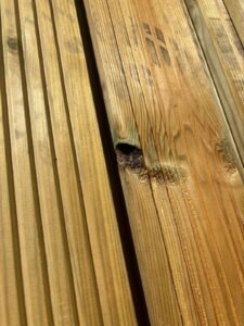 These boards may have some character, including cracks, noticeable warping, large knot holes, splits and shakes. These imperfections are purely aesthetic and do not compromise the structural integrity of the timber for many applications. They’re perfect for areas where a pristine finish isn’t essential, such as, hidden sections, cutting up to patch repair existing rotting decks or for projects where you enjoy the rustic look of natural timber.