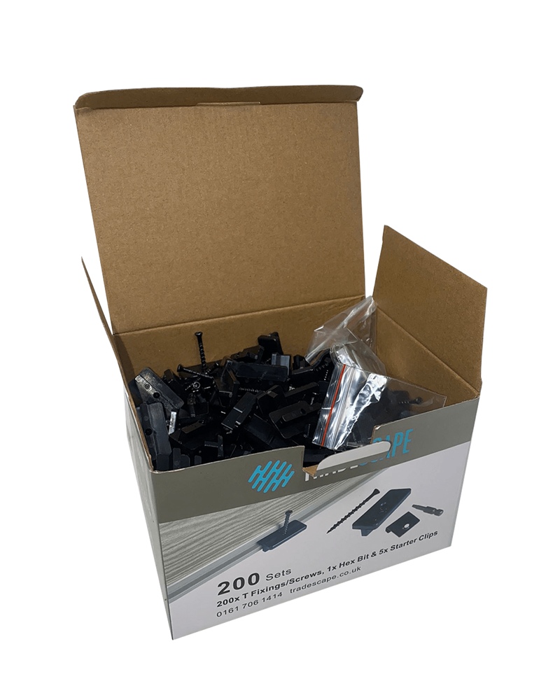 Our T-fixings are designed to create a clean, hidden finish for your decking project. Sitting neatly between each board, they provide a strong, secure fixing point while automatically maintaining a consistent 5mm gap for a professional, even look. A simple but essential solution for achieving a sleek, seamless deck installation.